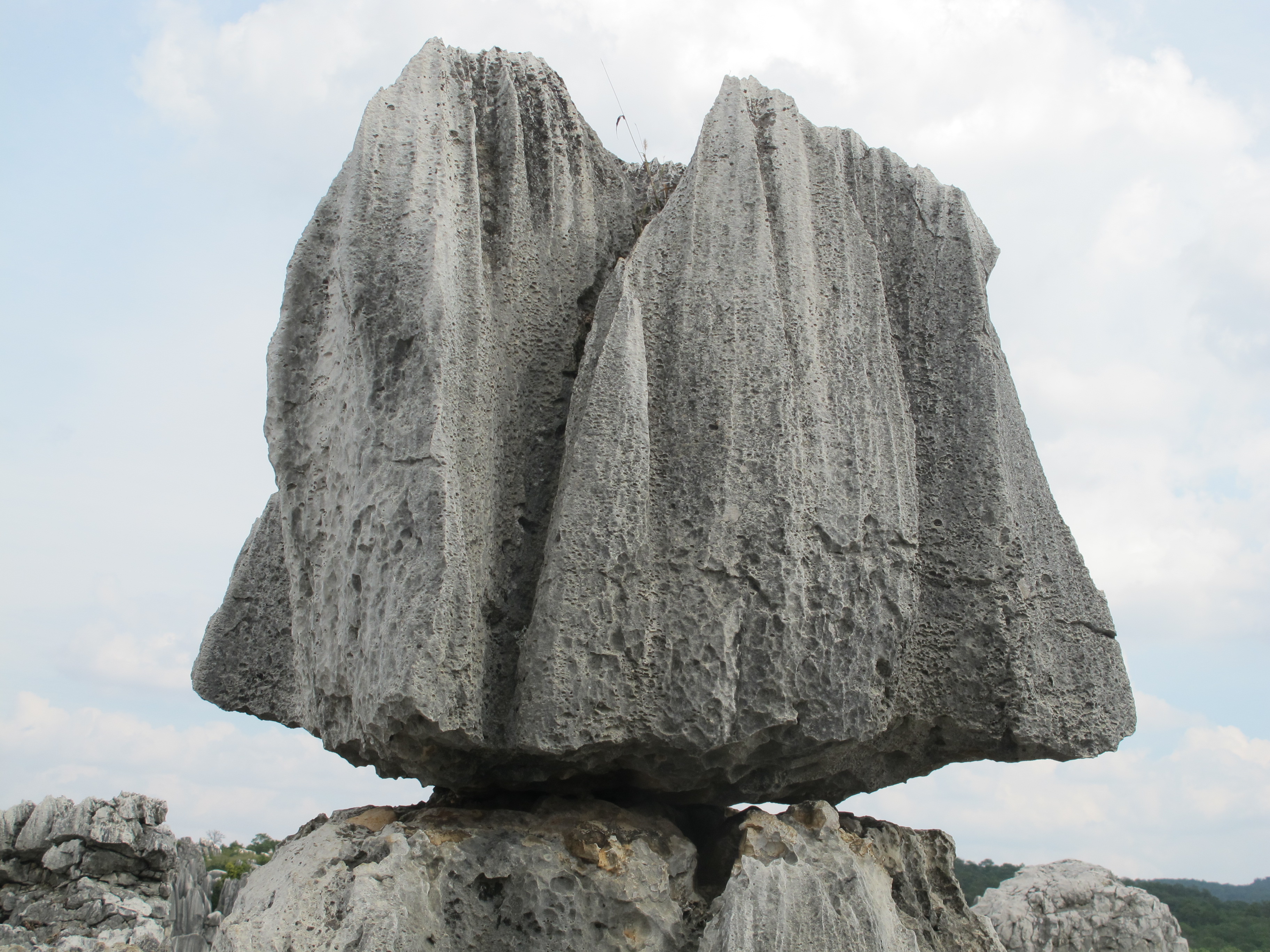 Back in the van we drove two hours to the Stone Forrest in Shilin. We had a passable lunch at a tourist spot outside the park then went in on foot to explore this geological wonder. Reminiscent of Stony Batter in New Zealand, huge rock outcroppings littered the horizon for as far as the eye could see. These, however, used to be under the sea rather than volcanic as were those in NZ. Our guide was skilled at leading us off the beaten path to explore the park without the throngs of Chinese tourists, but every once in awhile our paths met and we became the primary attraction. Mr.E’s blond hair was like a magnet to the Chinese tourists and they aggressively sought photographs with him and the other children. While the others were happy to oblige, Mr.E was not. He thought they were laughing at him and would yell, “Tell them to shut up.” He even rightly shoved one person who got too close in trying to cozy up to him for a shot.