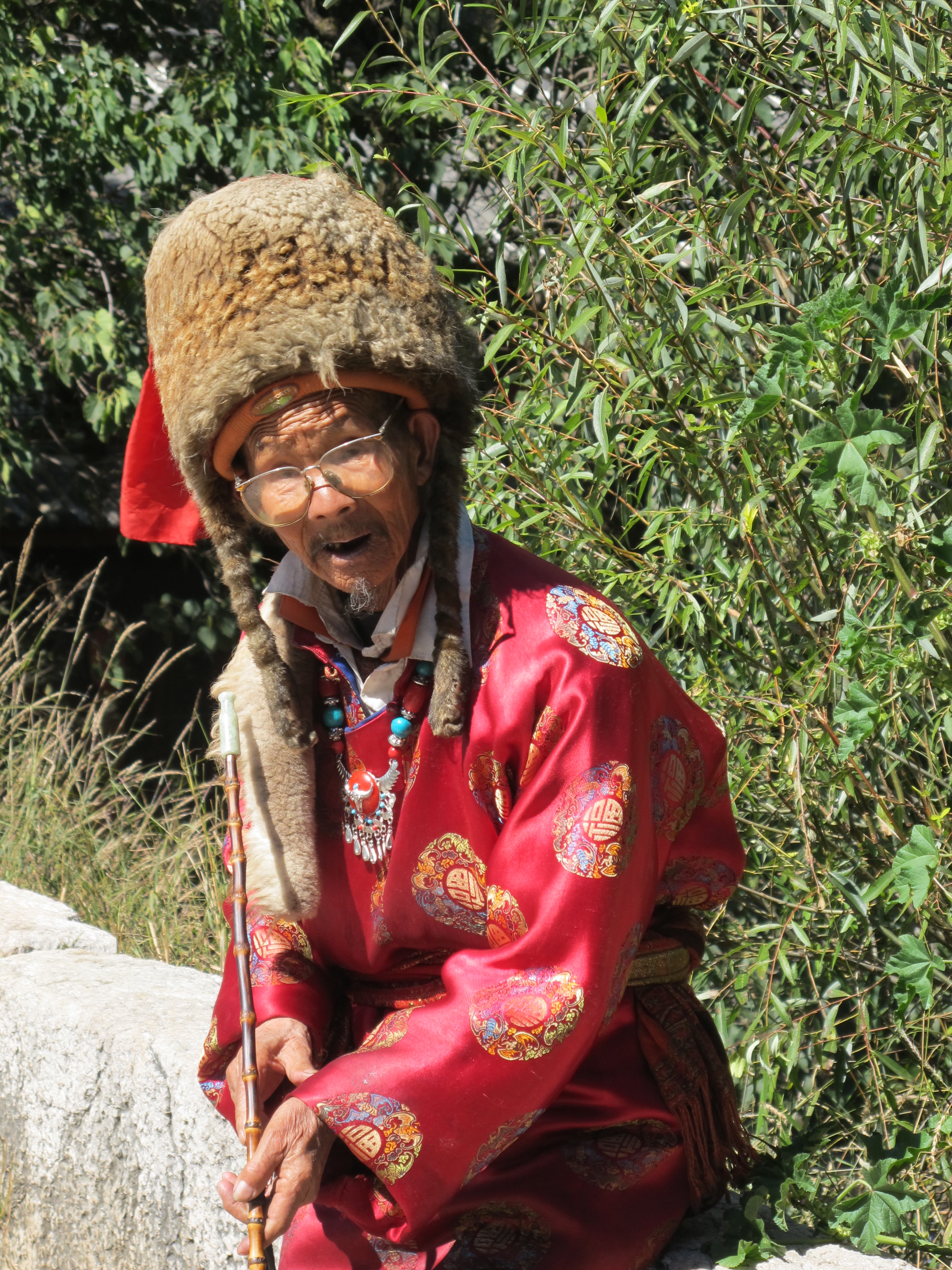 Still, it’s a lovely visual to see monks in burgundy robes walking around the grounds with their prayer beads. The monks build their own houses on the grounds of the temple, and villagers come to assist with honor. Across the pond below was a hillside that was pointed out to us, as it is the site for sky burials. Now this sounds innocuous enough by the name, but in fact, in Tibetan culture a common way to dispose of the human body after death is to chop it into 108 pieces and then place them on the hillside for the vultures to consume. We were also told that the same could be done and then placed in the stream to return most quickly to nature. I must admit I made a mental note not to eat fish that night.