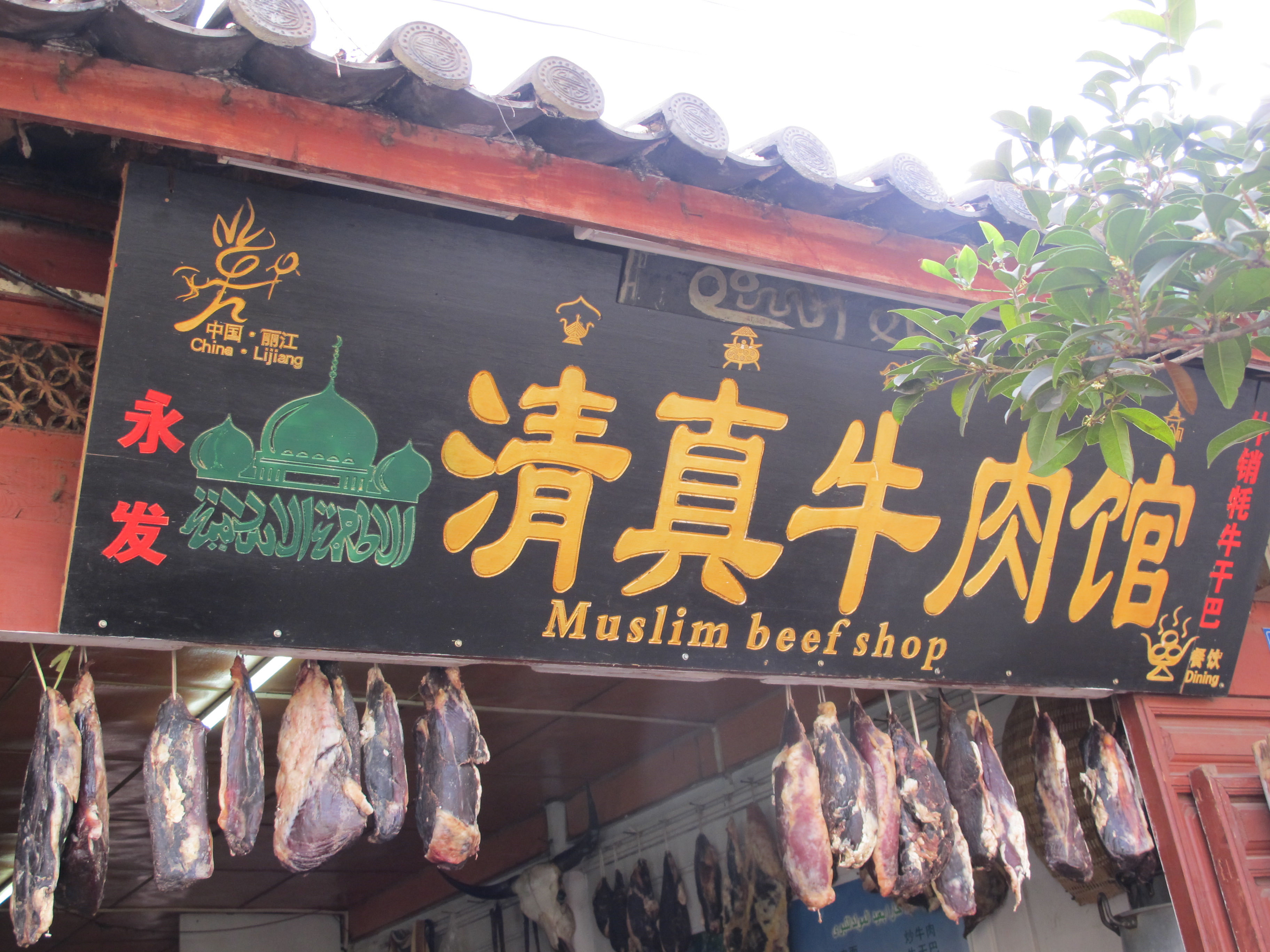 Dinner that night was our greatest challenge yet. Elena had talked up a Muslim beef restaurant that sounded fantastic, but when we pulled up we were squeamish. Hunks of meat hung from the ceiling and an entire wall was lined with drying cow intestines. It was gross. The place looked filthy, but we loved Elena so much we didn’t have the heart (or the guts) to decline, so we took a deep breath and sat down. True to form, the dishes that appeared on the table minutes later were delicious and everyone but Sidewalk ate well. You’d need Elena there to order for you and you have to be willing to suspend your idea of hygiene, but it’s worth it in the end. The food is cheap and good, and I have to brag that no one on our trip got sick even once, while other HK families traveling in the same region but taken to more typical tourist restaurants all suffered intestinal blues.